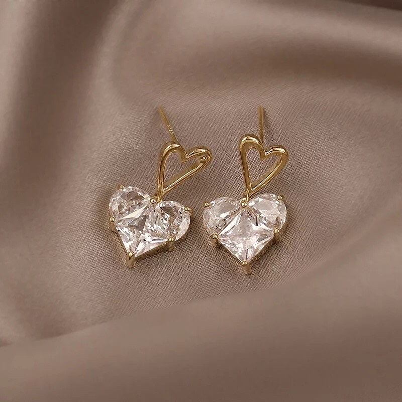 ハート型のジルコニアがキラキラと揺れるのが可愛いピアスです!